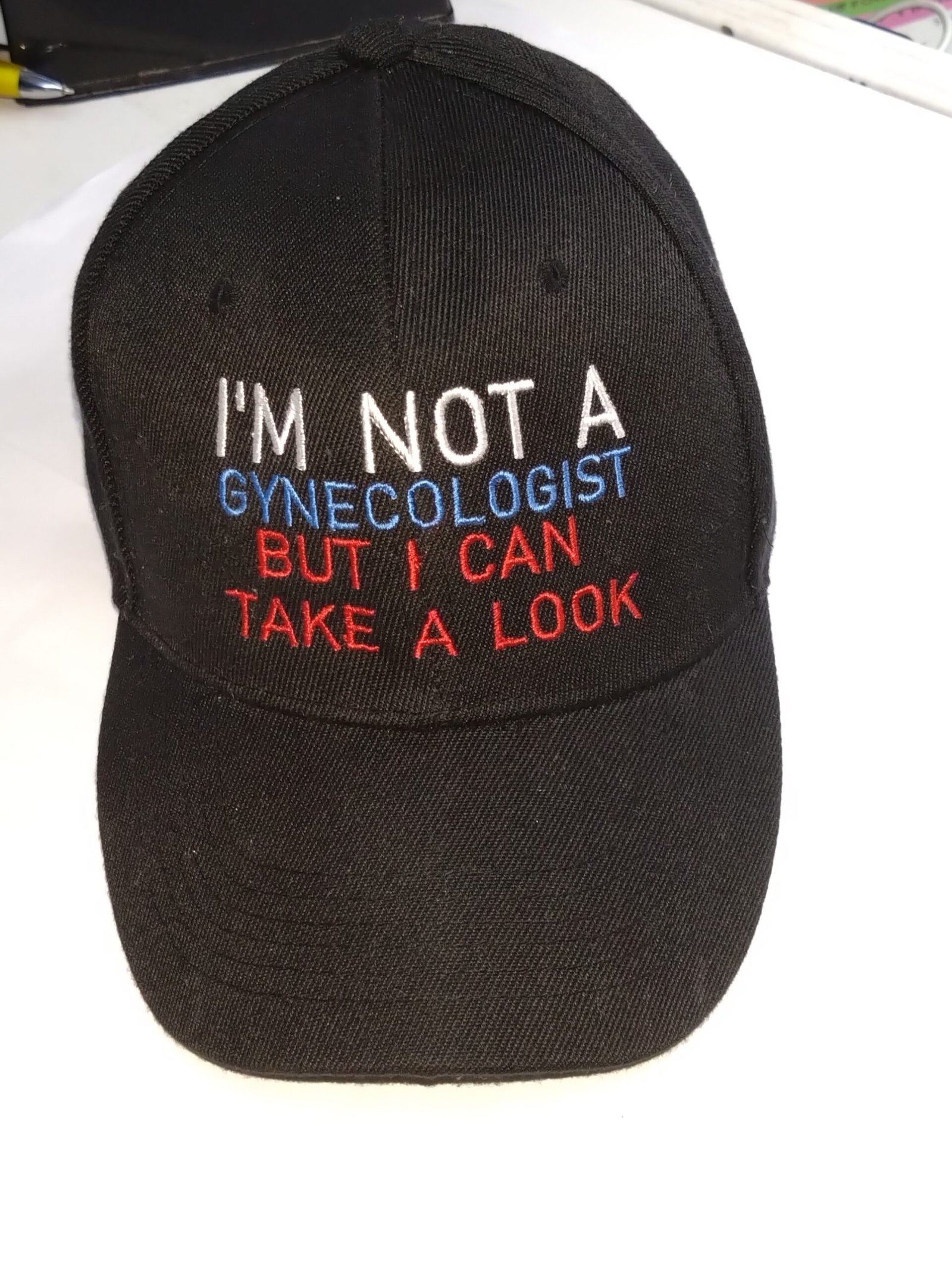Are you ready to turn heads and express your sense of humor? The I’M-NOT-A-GYNECOLOGIST-BUT-I-CAN-TAKE-A-LOOK embroidered cap is the perfect accessory for those who love to make bold fashion choices with a quirky twist. Featuring a sleek black design and eye-catching embroidered text, this cap lets your personality shine while keeping your look effortlessly cool and modern. Whether you’re heading out for a casual day or attending a laid-back gathering, this cap ensures you’re ready to stand out in the crowd.